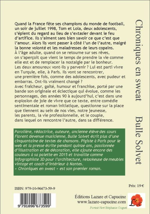 Ancienne élève des cours Florent devenue musicienne, Bulle Solvet est l’auteure de plus d’une cinquantaine de textes de chansons. Pigiste à Paris pour le web et la presse écrite pendant quinze ans, passionnée d’illustration et de décoration, elle ajoute encore des couleurs à sa palette en 2015 pour travailler comme infographiste 3D en architecture, relookeuse de meubles vintage et coach d’intérieur à Nantes.